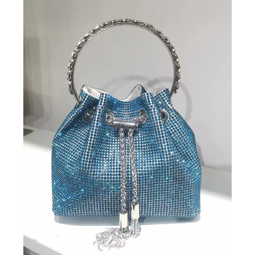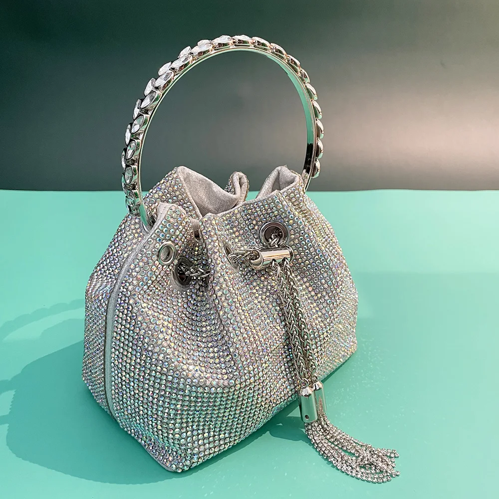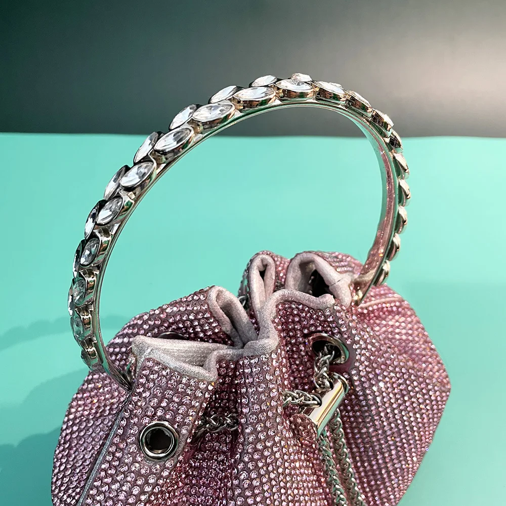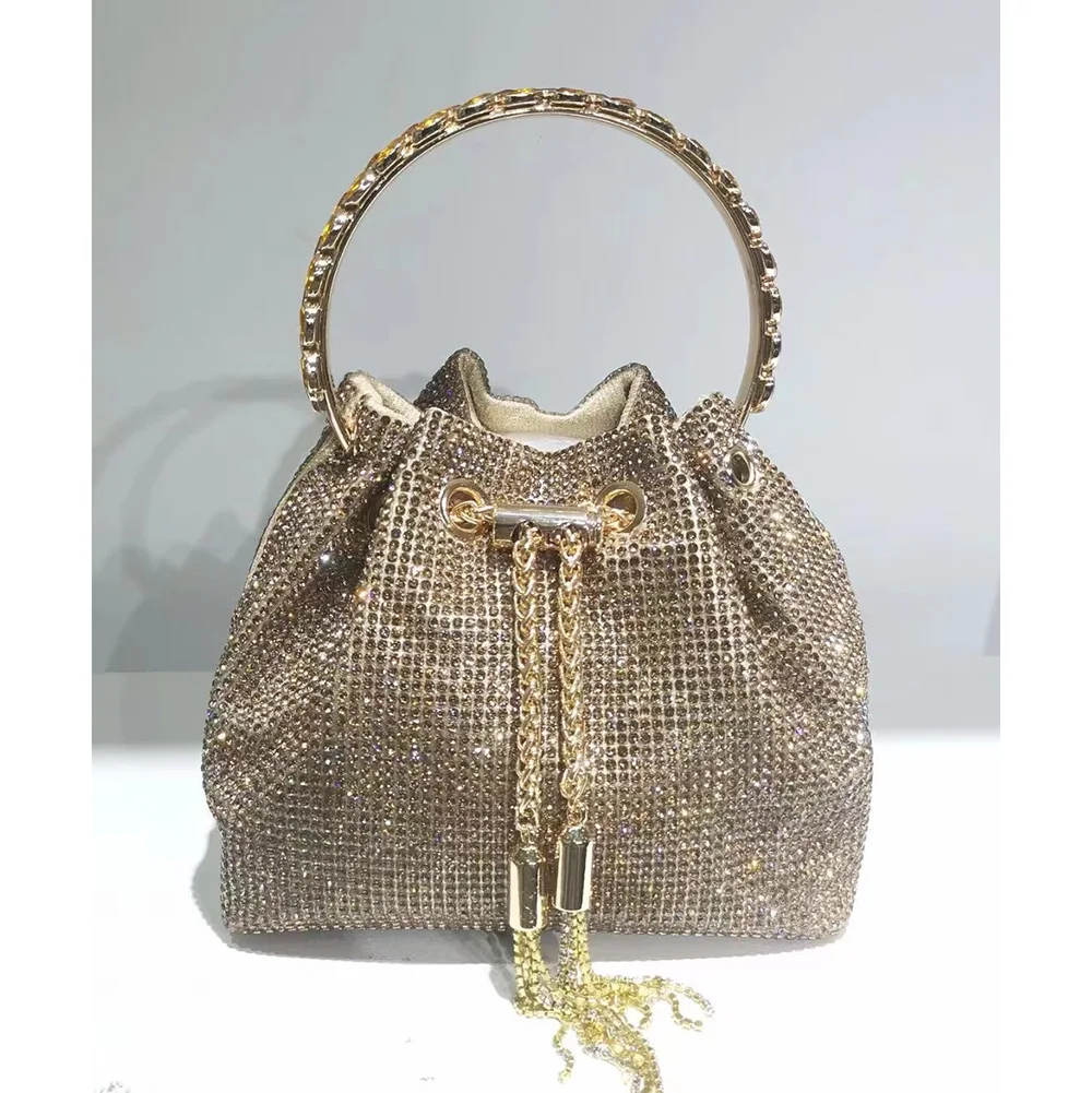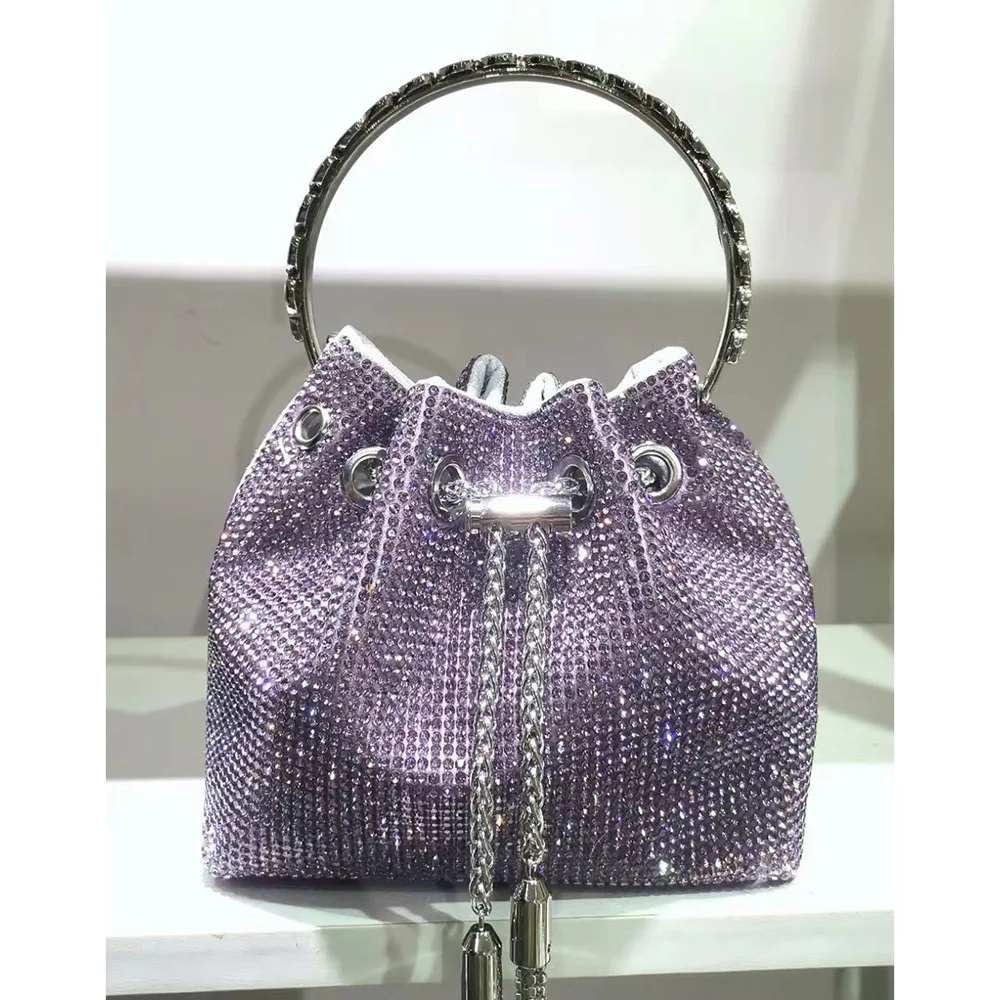 頂部手柄水鑽晚裝手拿包女包錢包水桶女士手提包奢華設計師鑽石單肩閃亮水晶