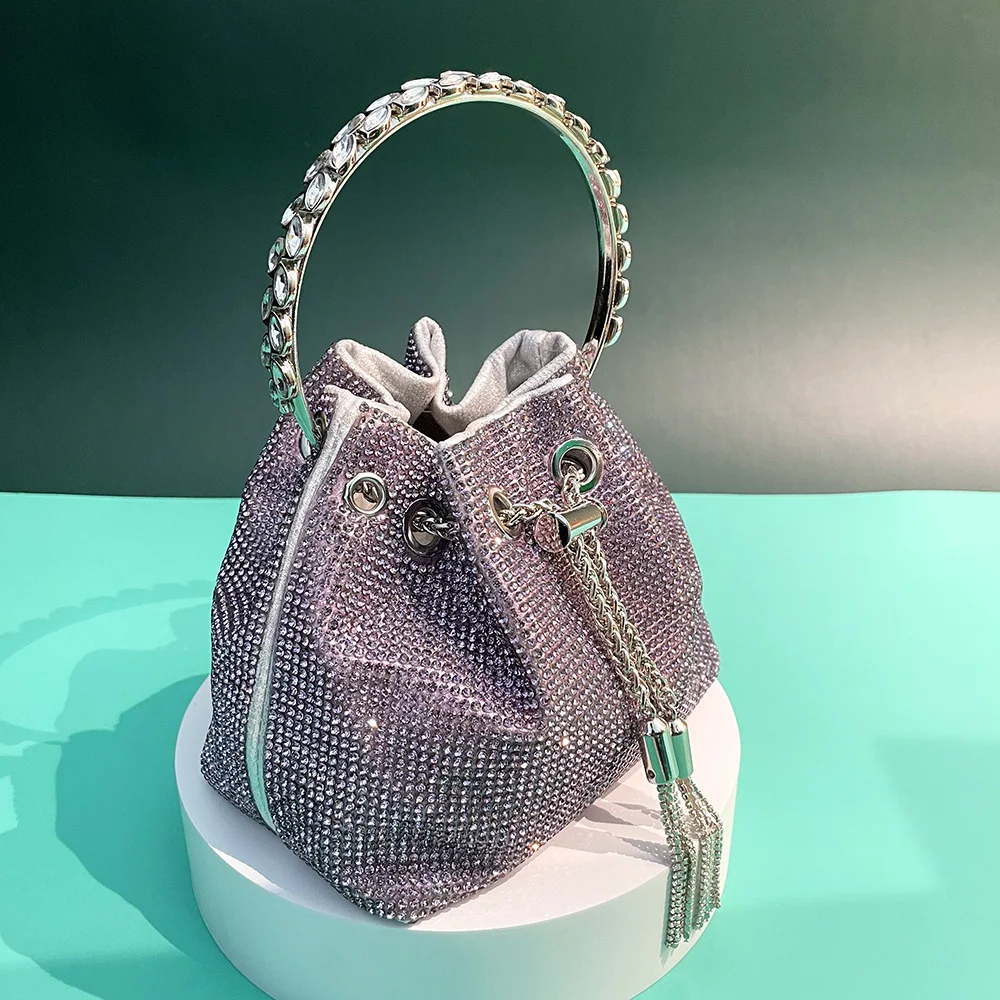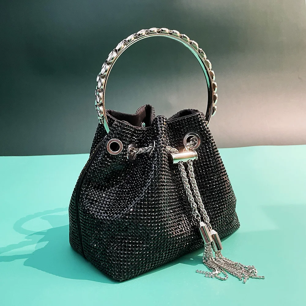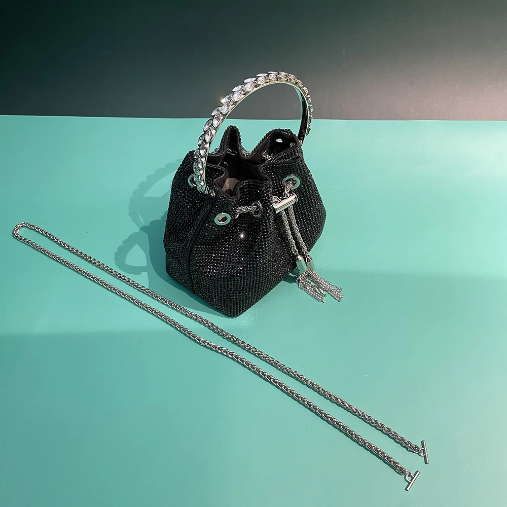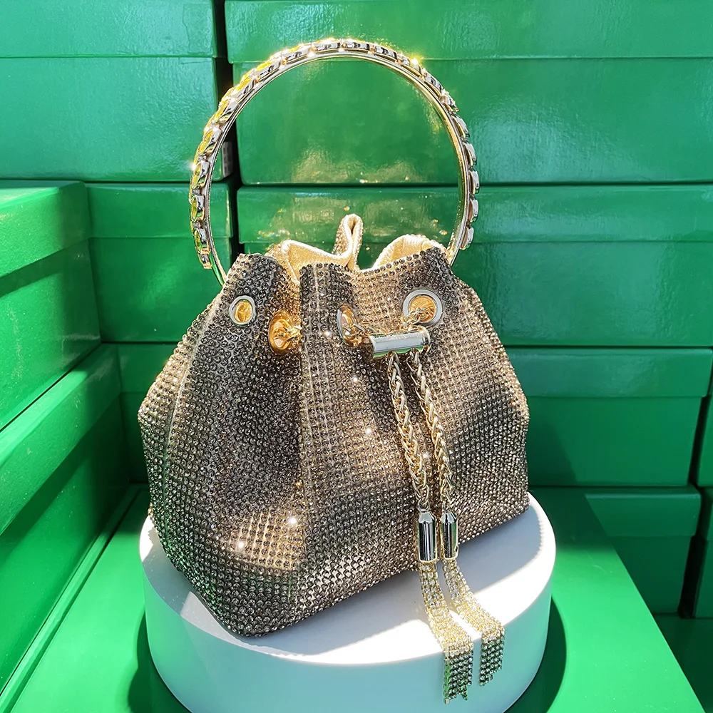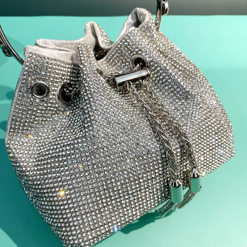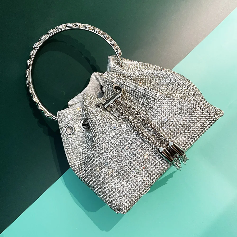 頂部手柄水鑽晚裝手拿包女包錢包水桶女士手提包奢華設計師鑽石單肩閃亮水晶