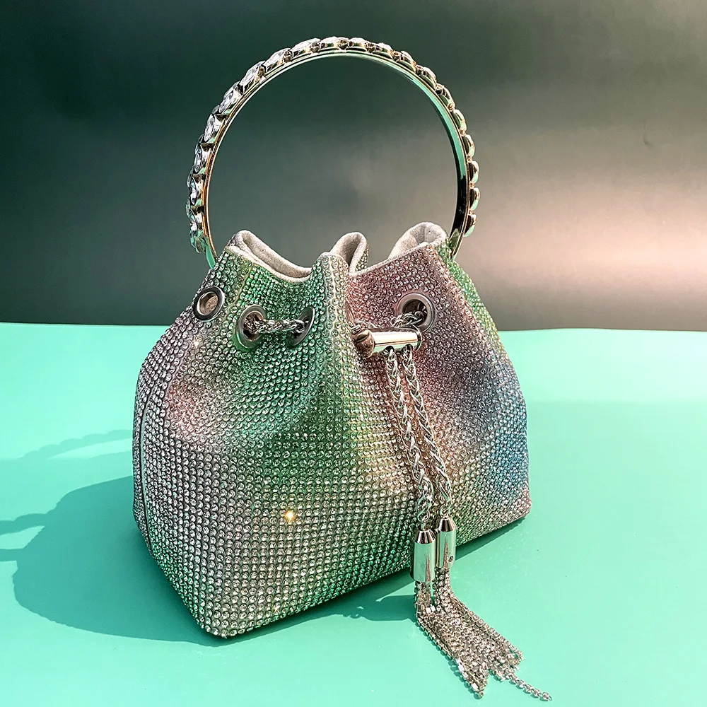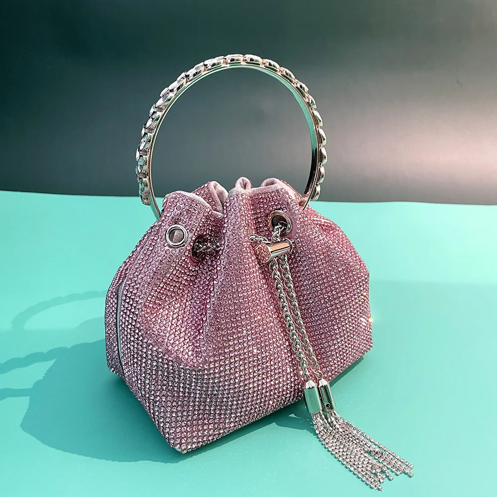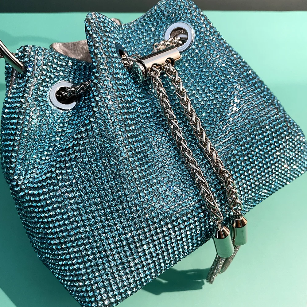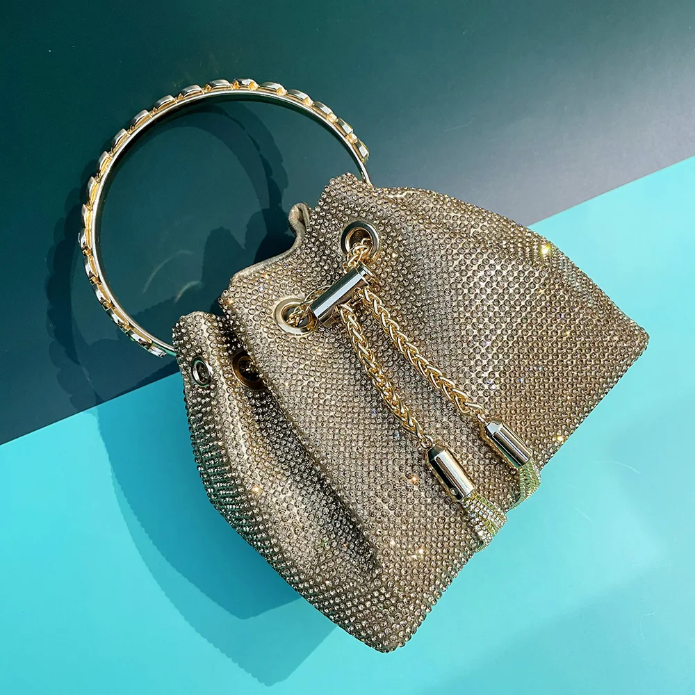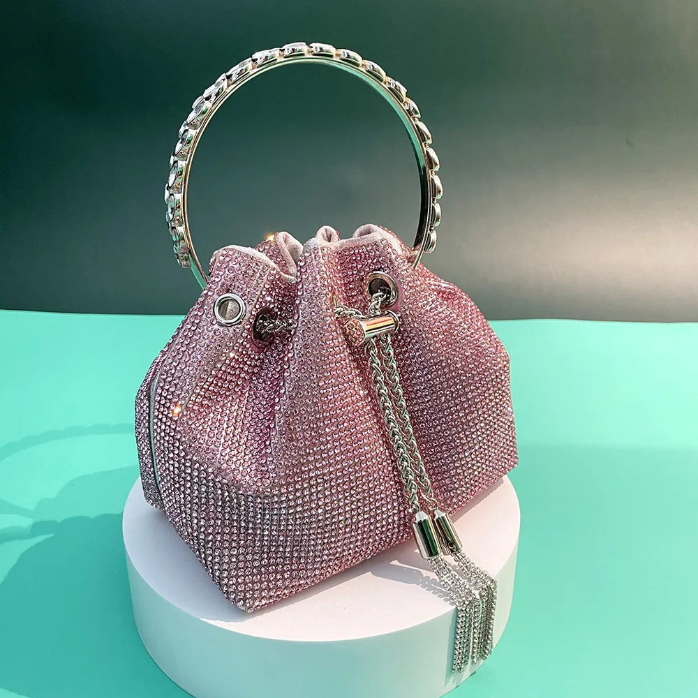 頂部手柄水鑽晚裝手拿包女包錢包水桶女士手提包奢華設計師鑽石單肩閃亮水晶