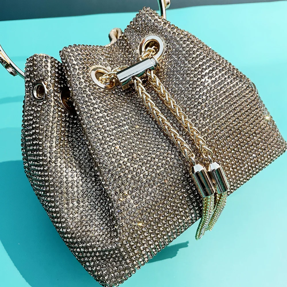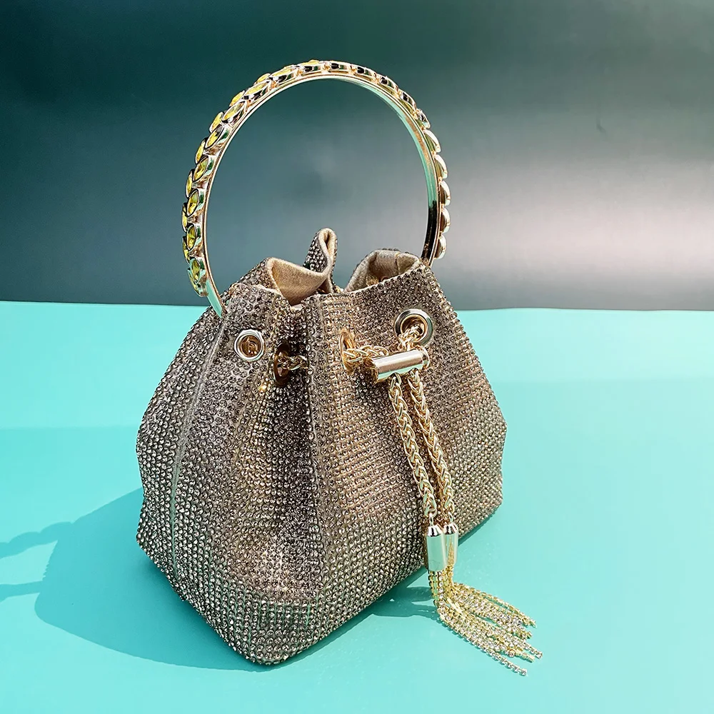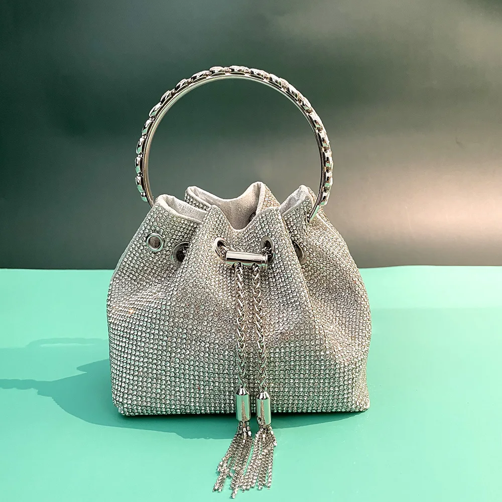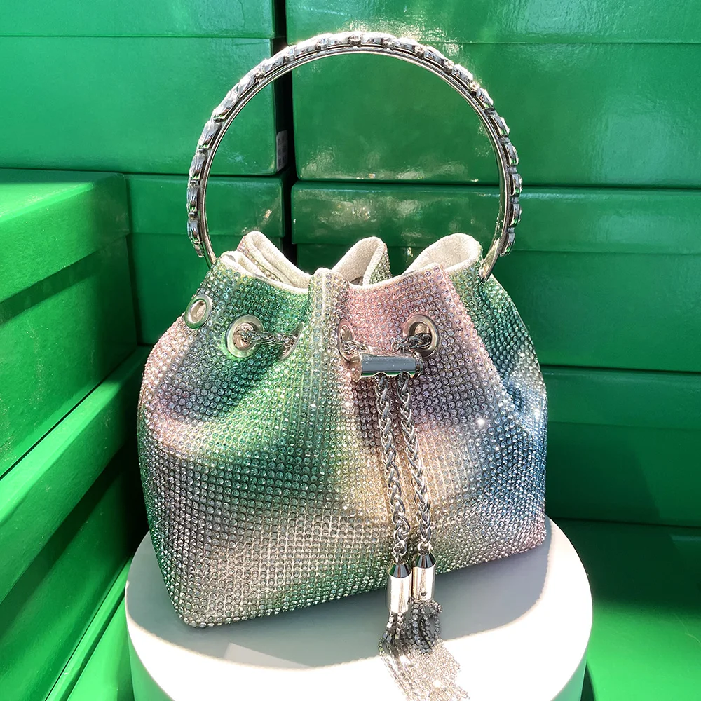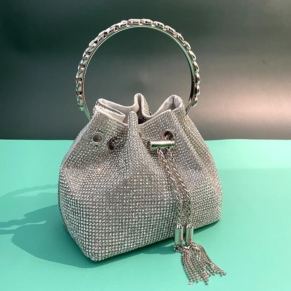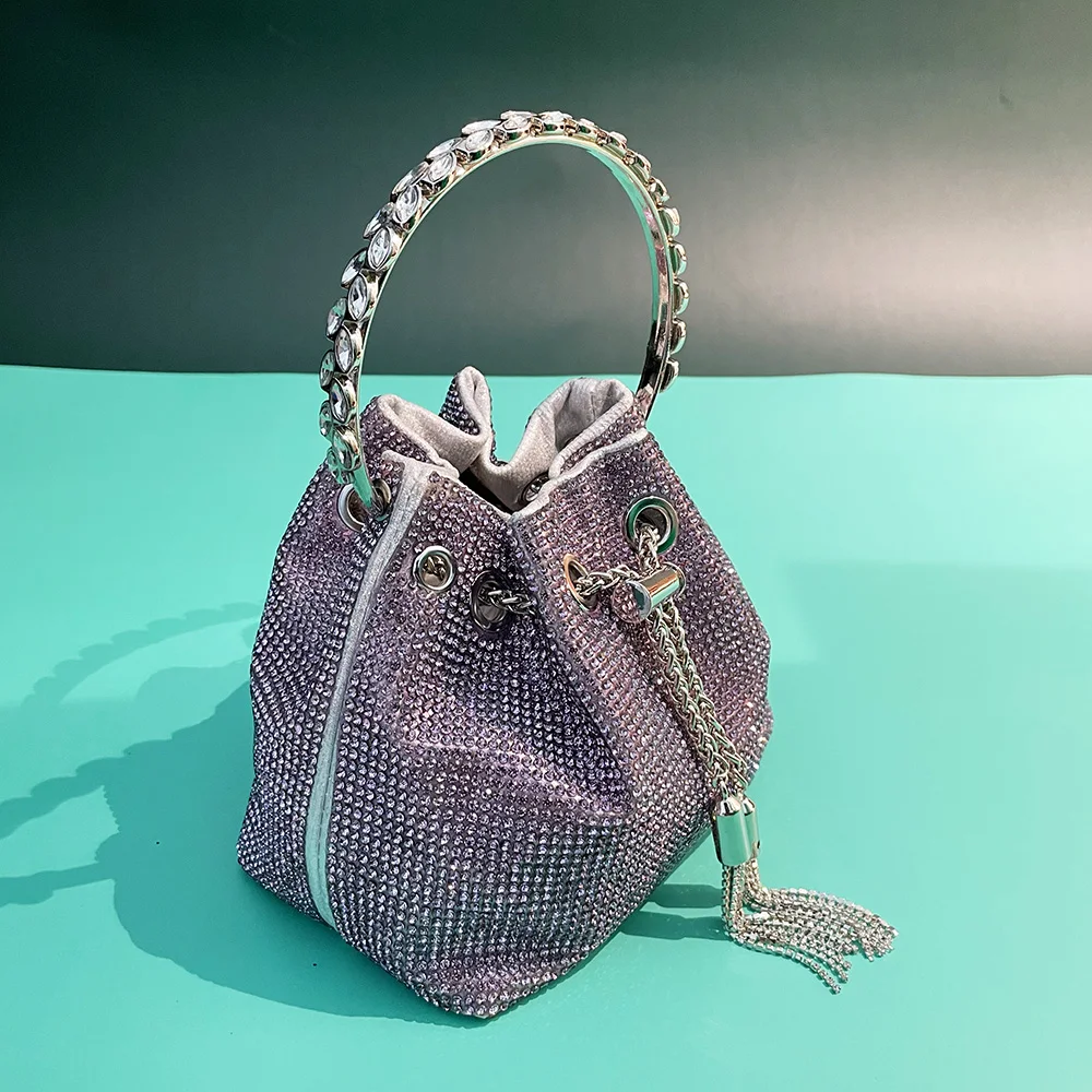 頂部手柄水鑽晚裝手拿包女包錢包水桶女士手提包奢華設計師鑽石單肩閃亮水晶