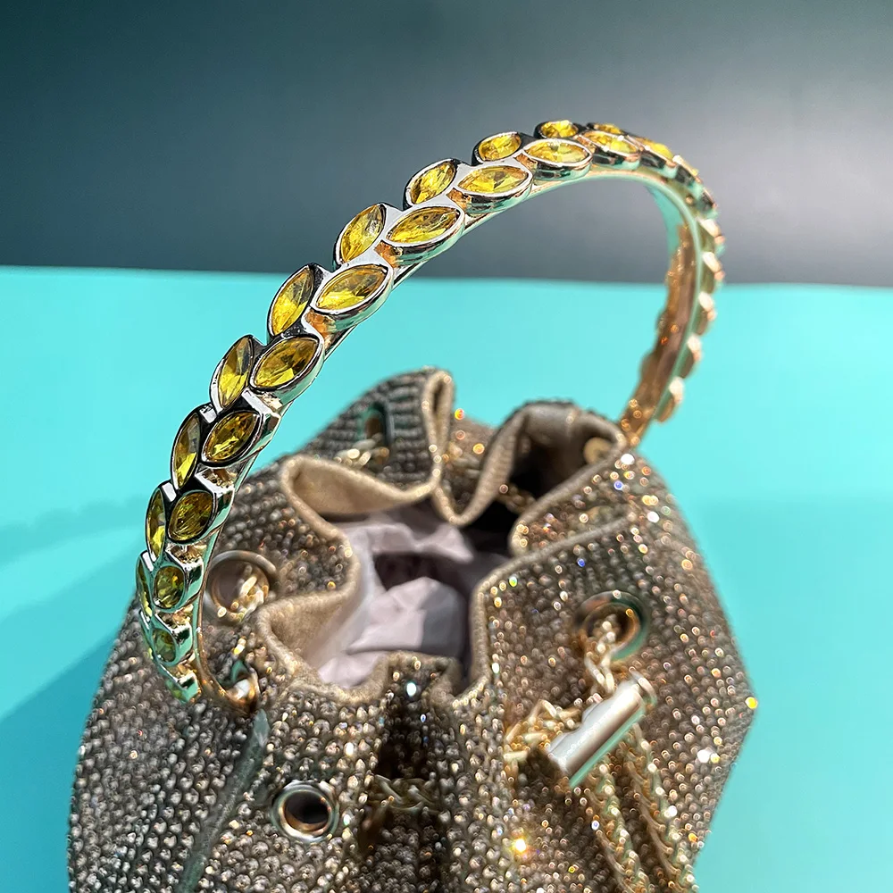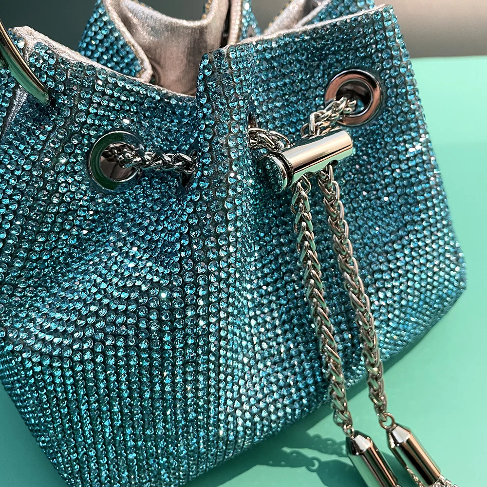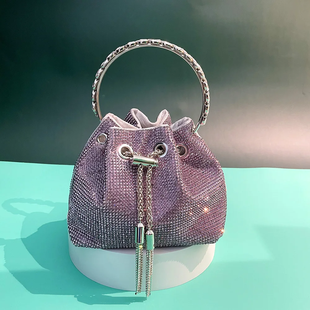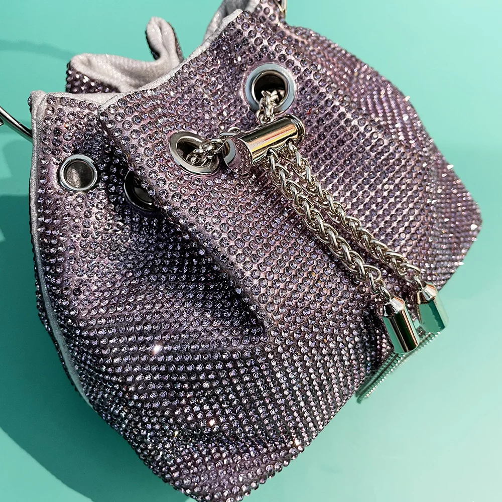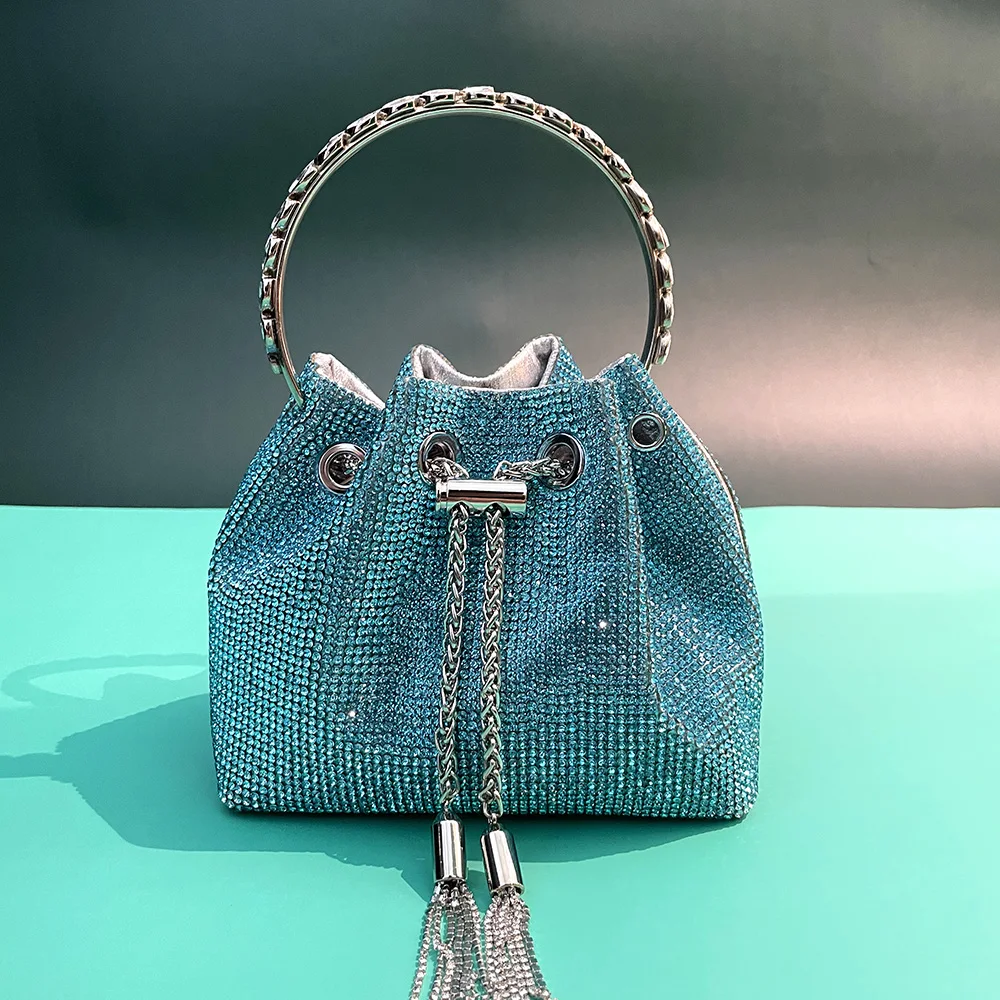 頂部手柄水鑽晚裝手拿包女包錢包水桶女士手提包奢華設計師鑽石單肩閃亮水晶