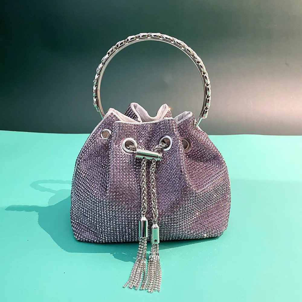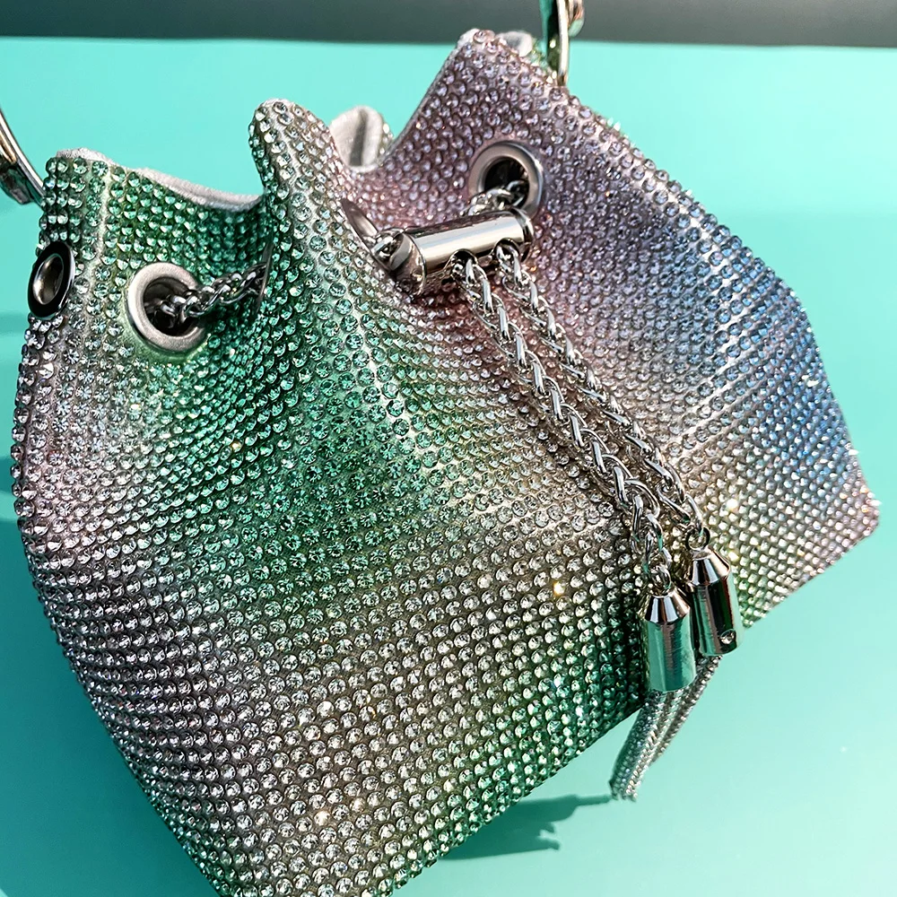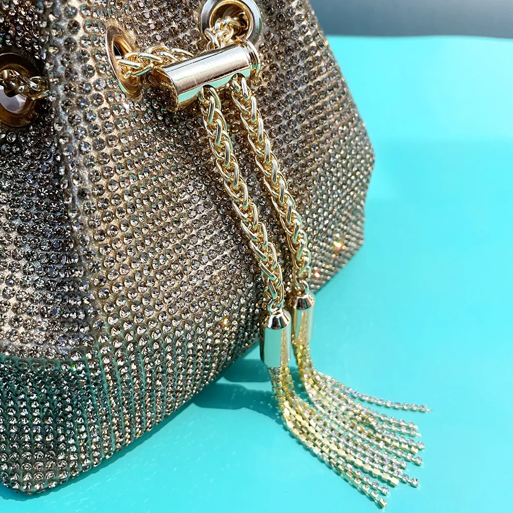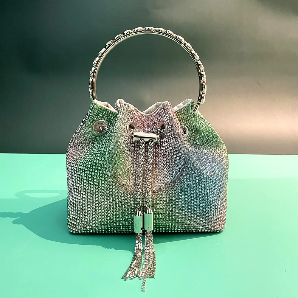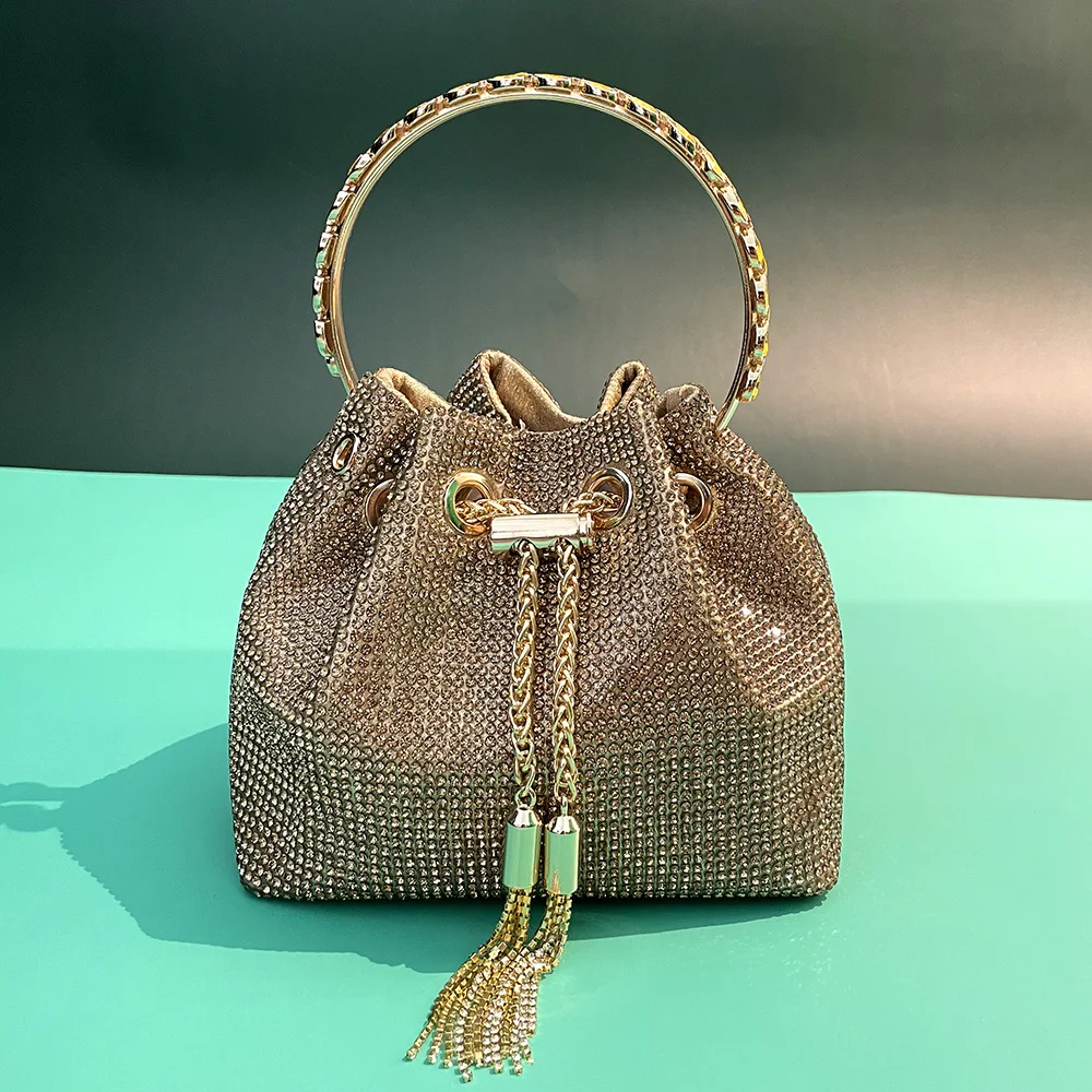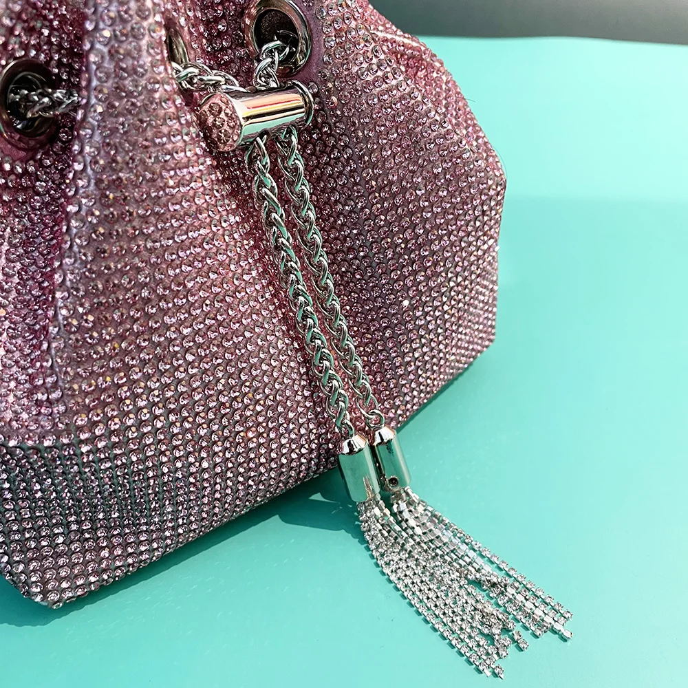頂部手柄水鑽晚裝手拿包女包錢包水桶女士手提包奢華設計師鑽石單肩閃亮水晶