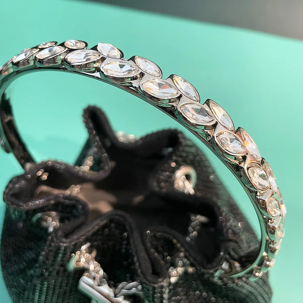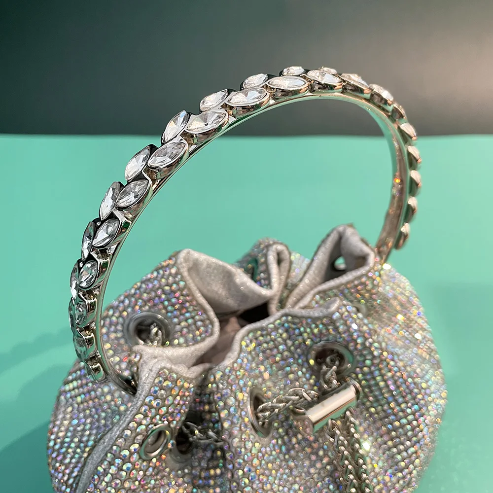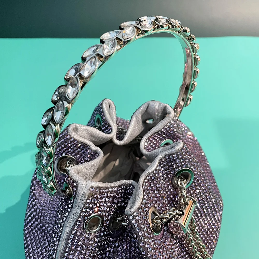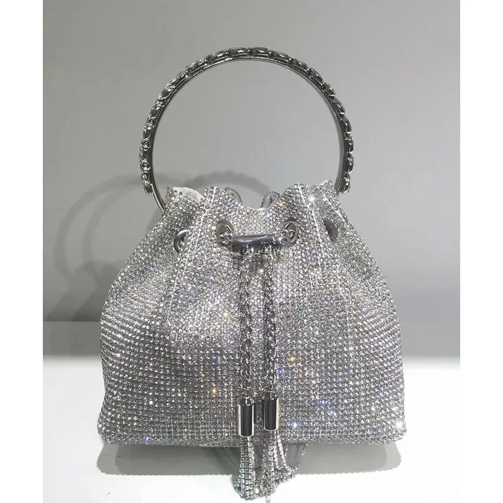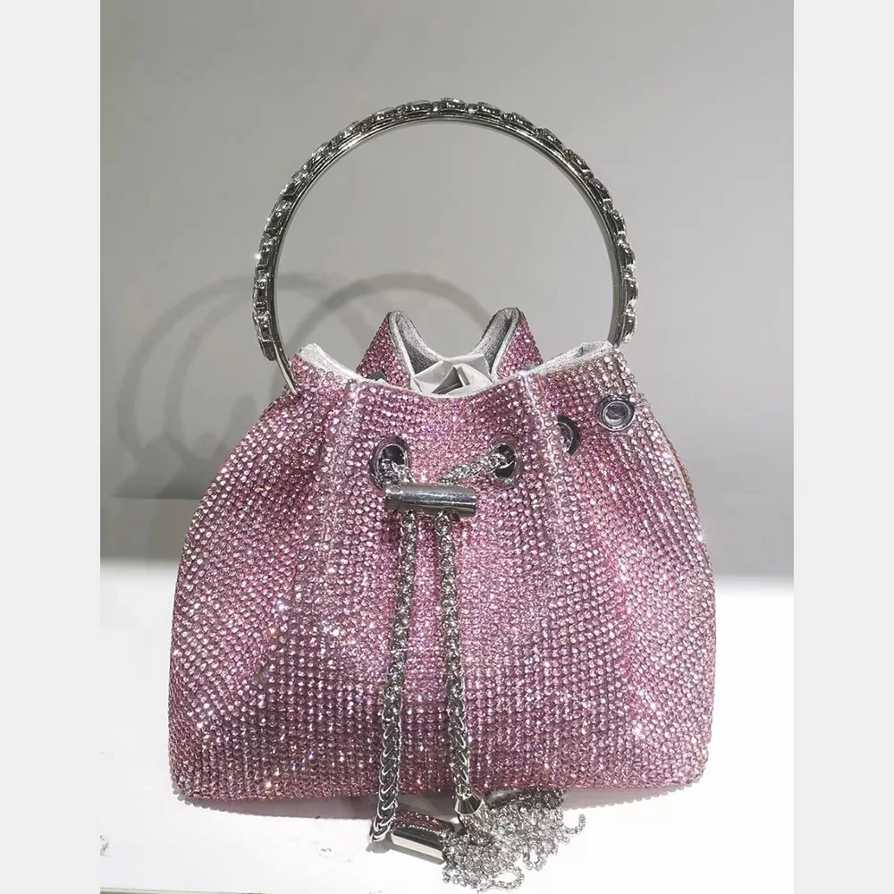 搶先評價 “頂部手柄水鑽晚裝手拿包女包錢包水桶女士手提包奢華設計師鑽石單肩閃亮水晶”