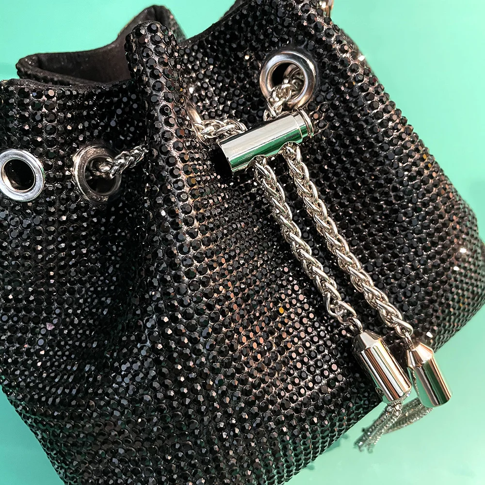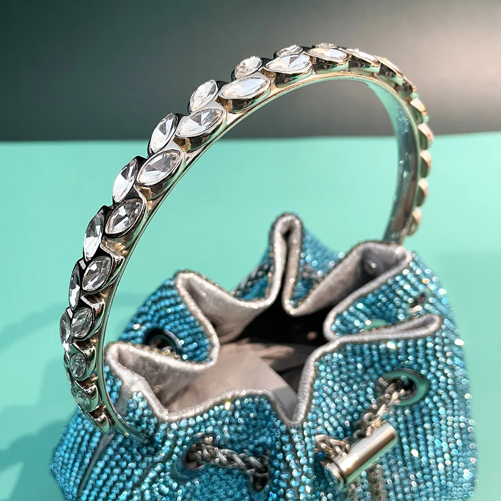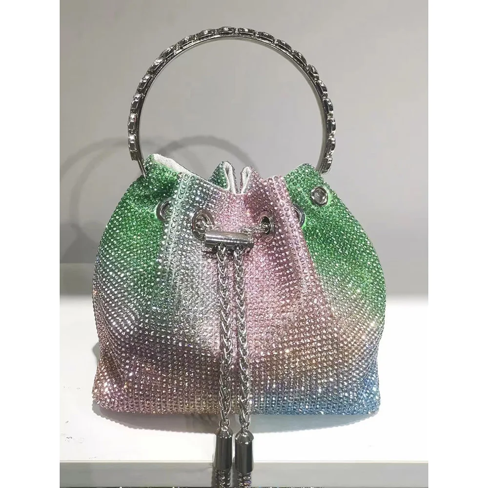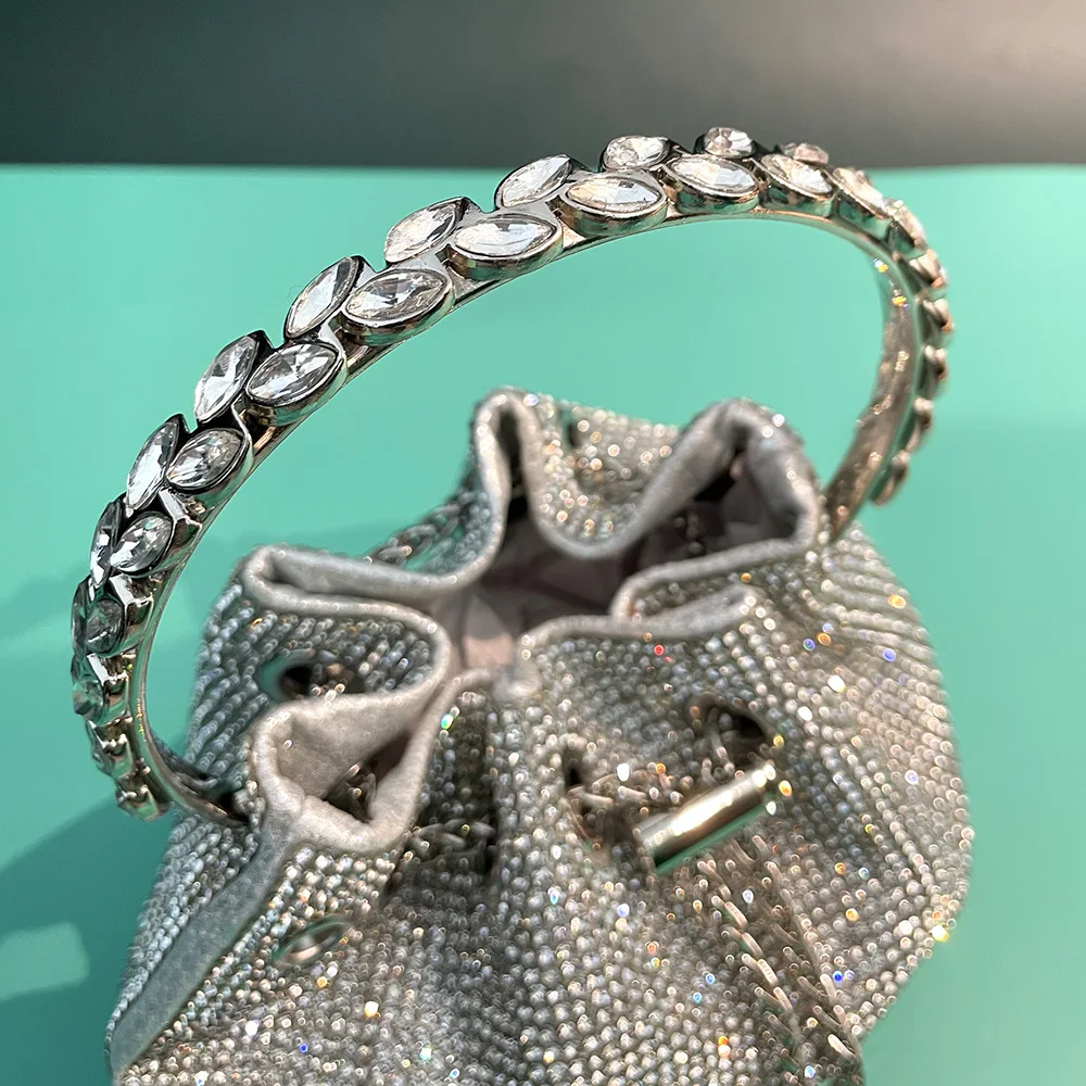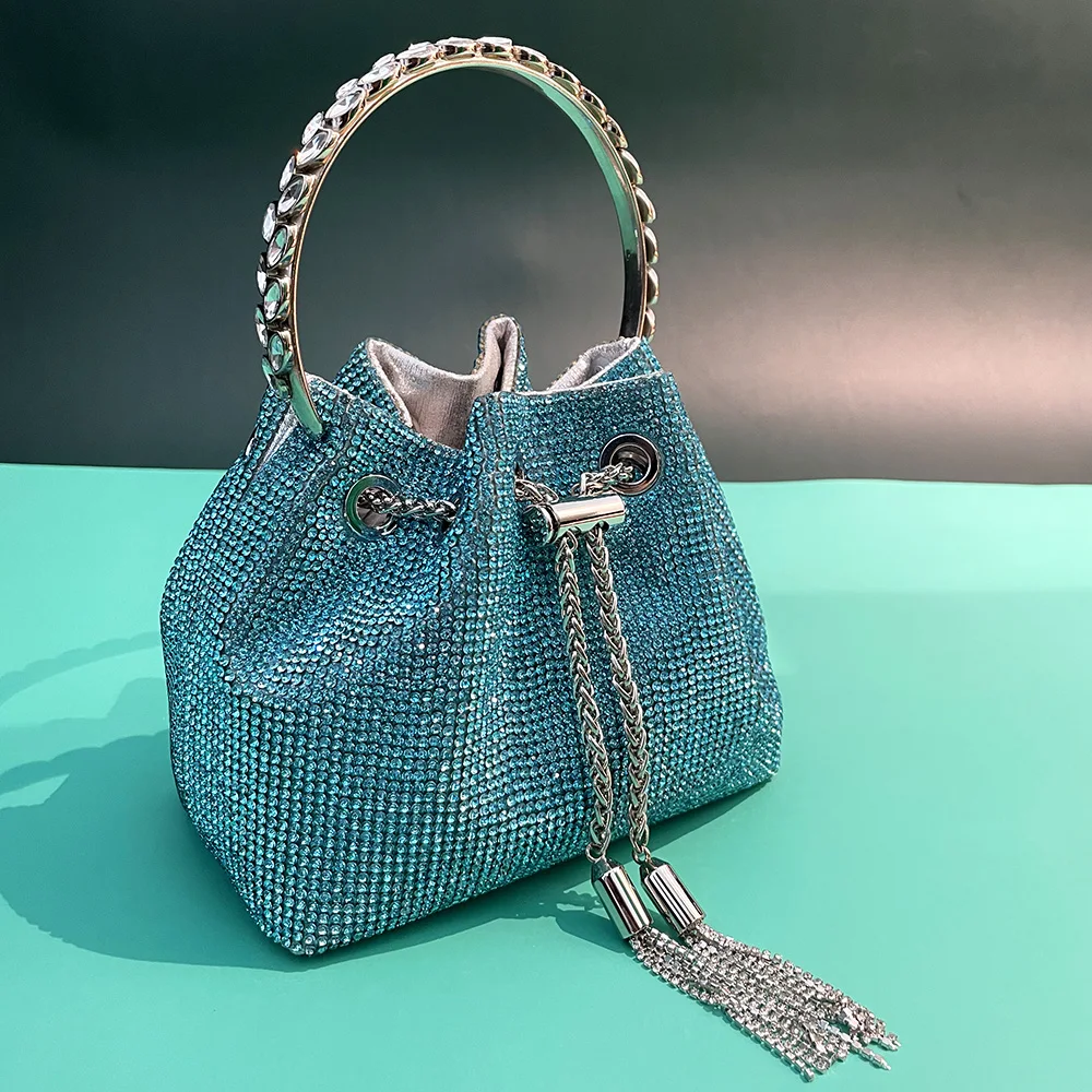 搶先評價 “頂部手柄水鑽晚裝手拿包女包錢包水桶女士手提包奢華設計師鑽石單肩閃亮水晶”