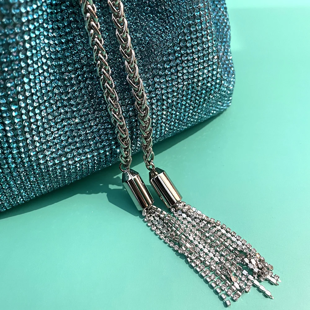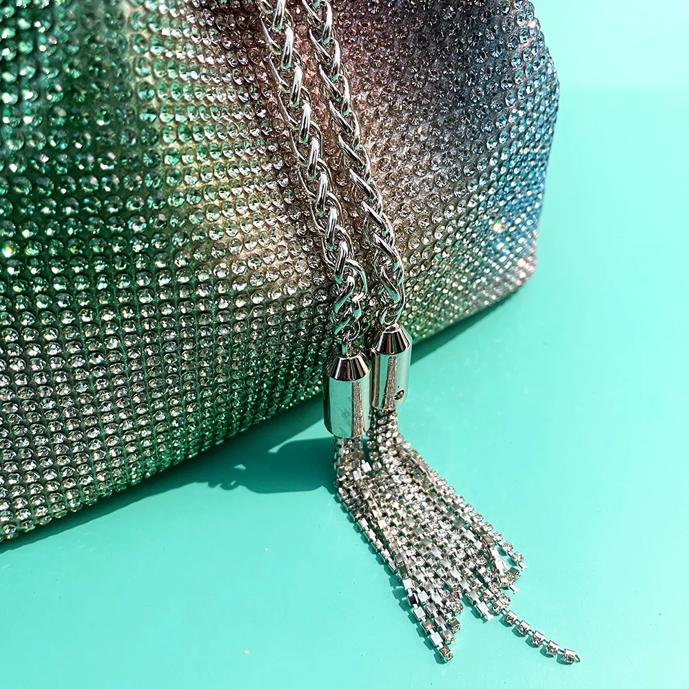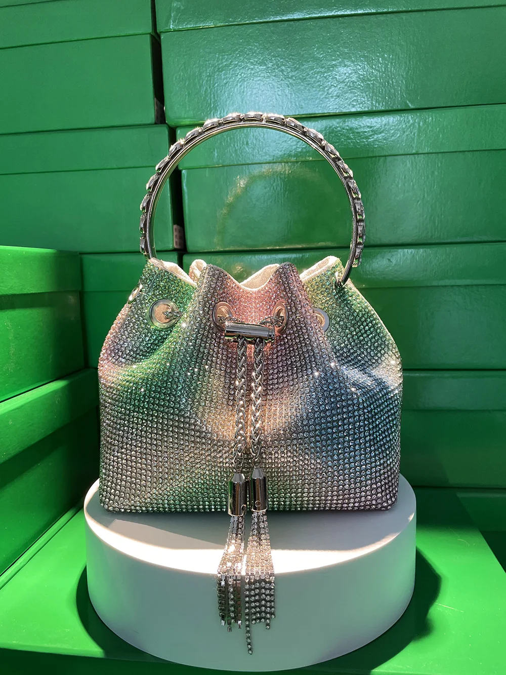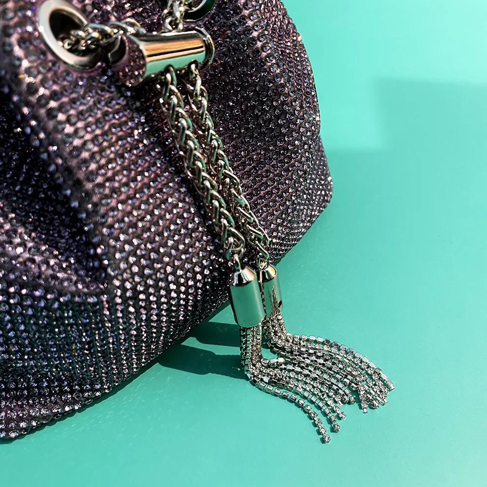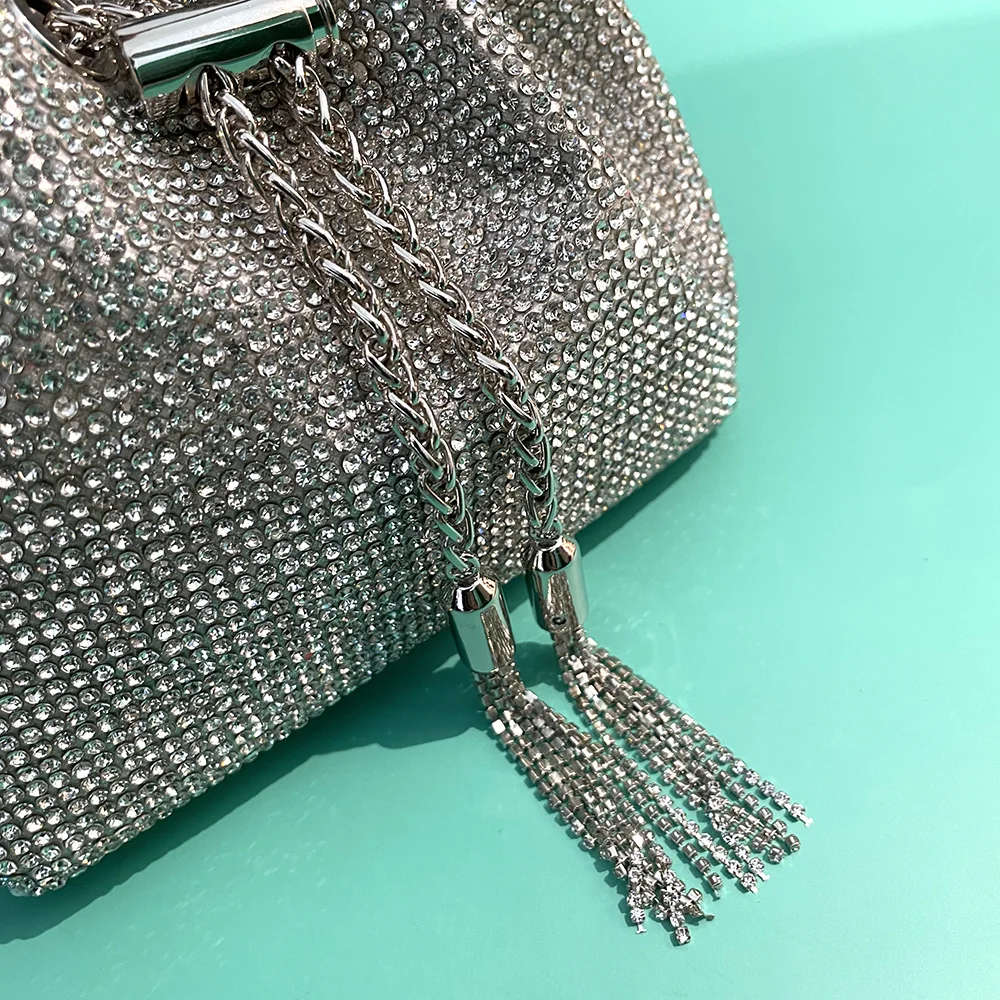 搶先評價 “頂部手柄水鑽晚裝手拿包女包錢包水桶女士手提包奢華設計師鑽石單肩閃亮水晶”