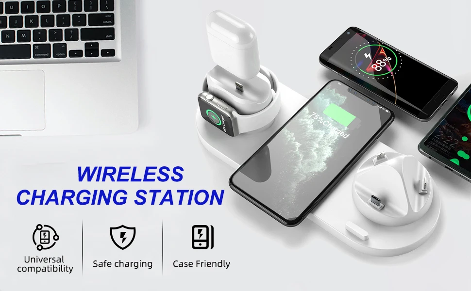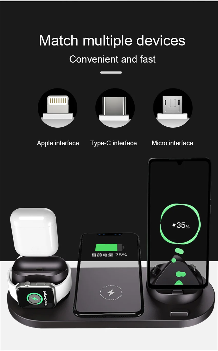 This 10-in-1 wireless charger for iphone supports the smart phone and fit for apple Watch 2/3/4/5/6/7. it could charge a phone, a smart watch, a headphone at the same time to save your time.