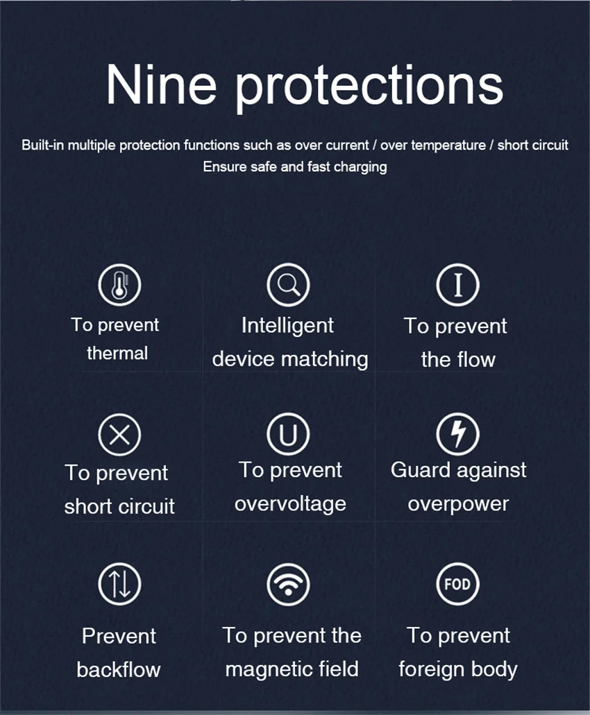 Mobile Phone Wireless Charging Power:100W 65W 30W 20W 15W 10W 7.5W 5W (100W will be faster than others)