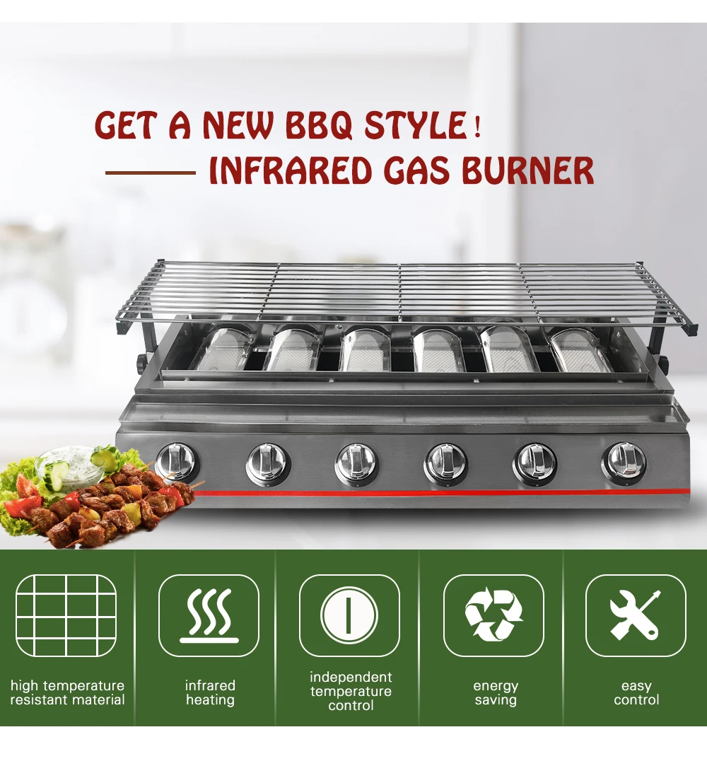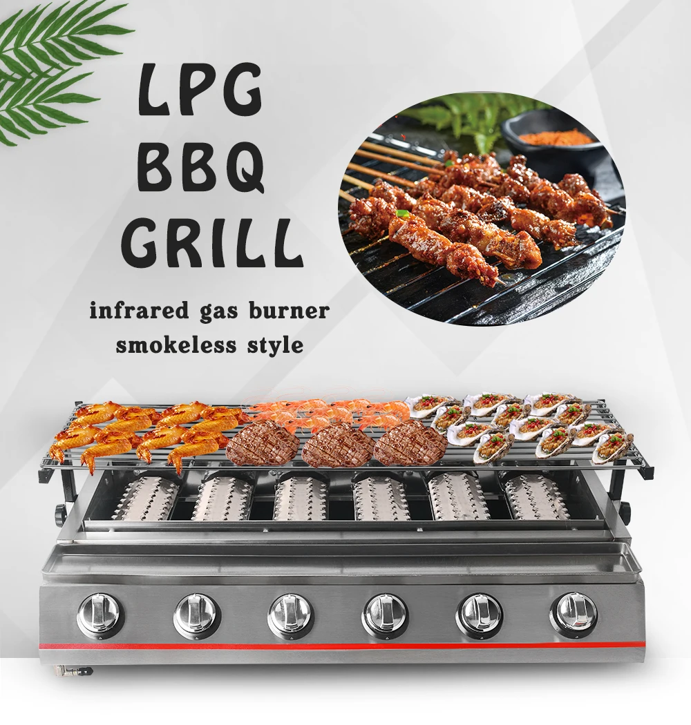 搶先評價 “BBQ Grill 燃氣燒烤爐小型 6 燃燒器紅外線無菸烤盤 LPG 燃氣鋼烤架戶外野餐燒烤爐廚房”