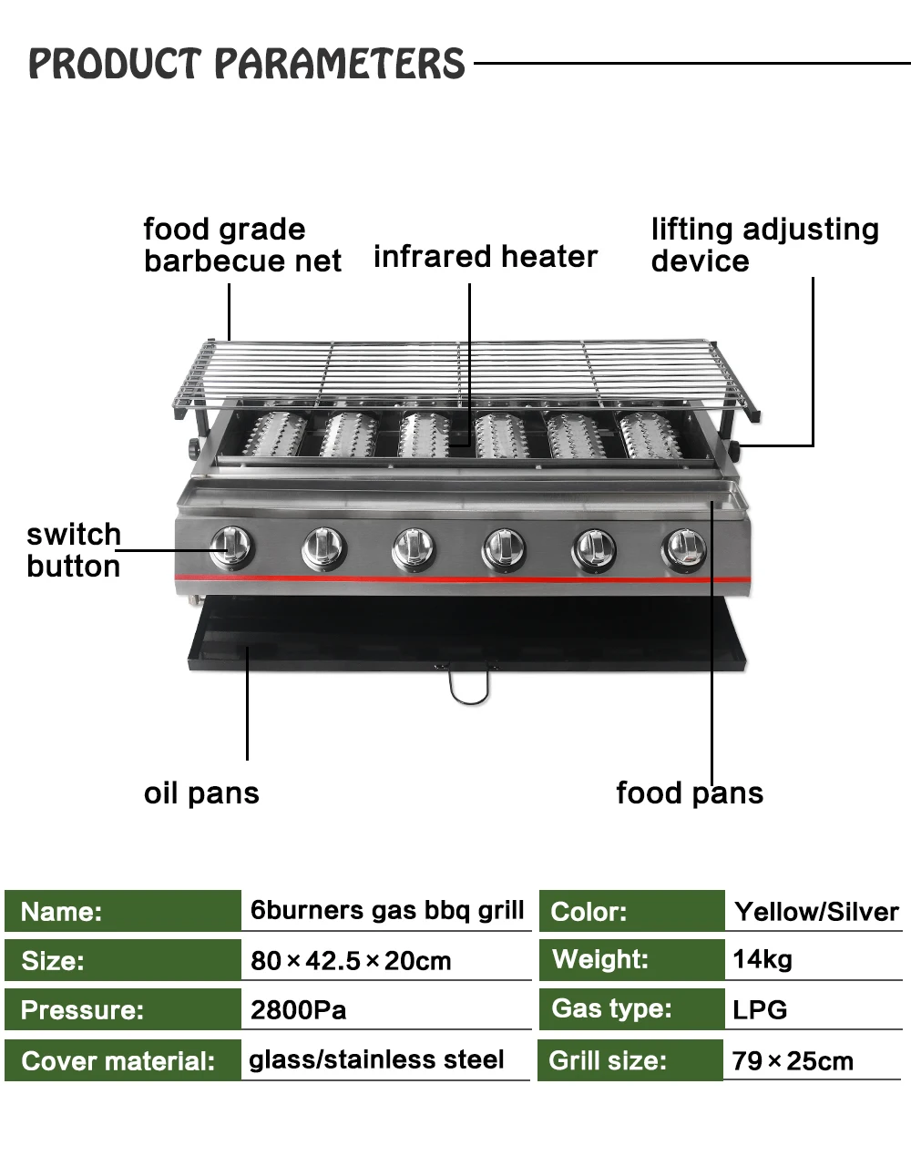 • Name: 6 Burners Gas BBQ Grill