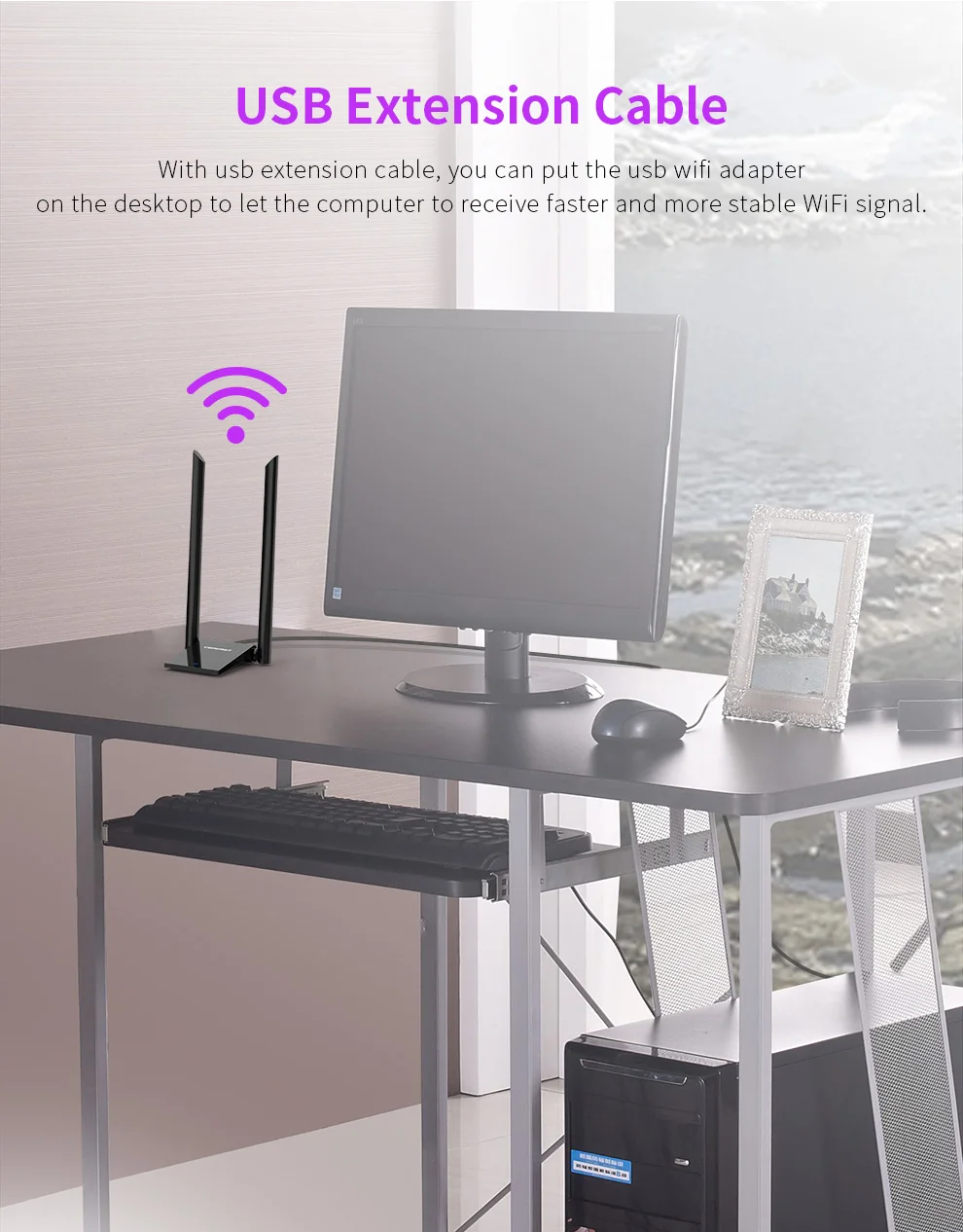 With usb extension cable, you can put the usb wifi adapter on the desktop to let the computer to receive faster and more stable WiFi signal.