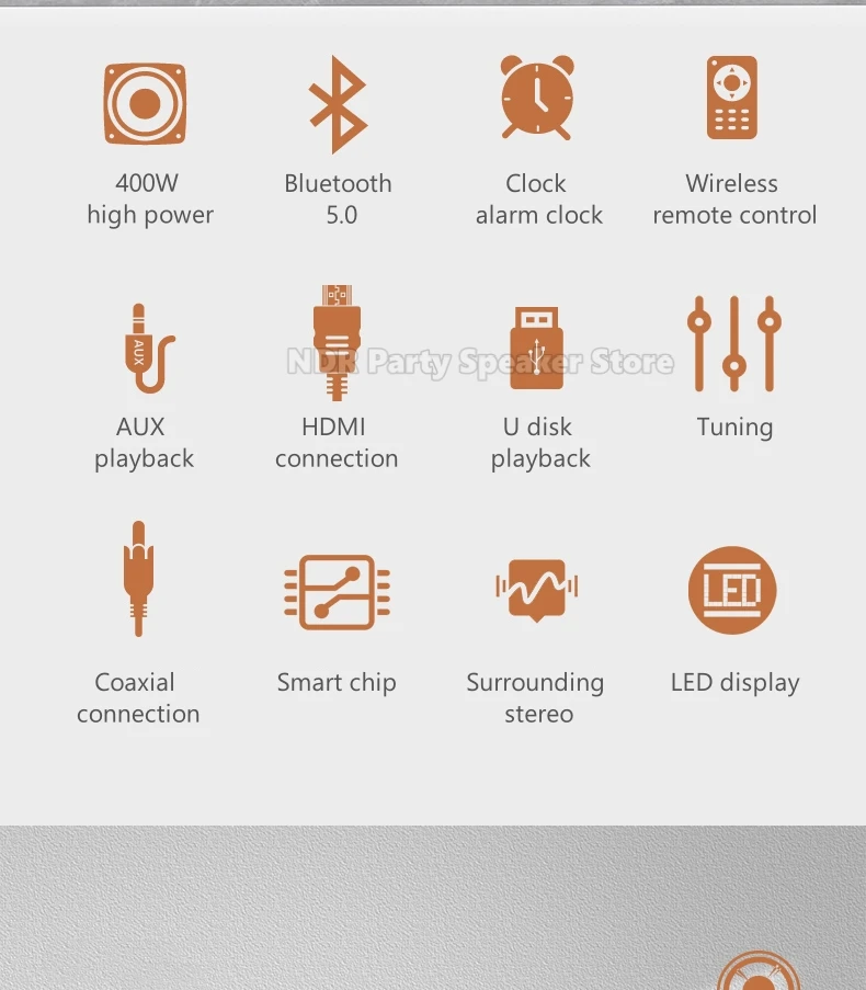 - Communication: Induction,AUX,Coaxial Input,USB,bluetooth,HDMI-compatible